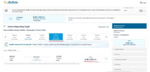 Potrivit ofertelor publicate pe site-urile companiilor aeriene, un bilet one-way operat de compania emirateză Flydubai pentru 11 martie 2026 ajunge la circa 1.043 de euro pentru un pasager în clasa economică. Zborul este direct și durează aproximativ 5 ore și 30 de minute.