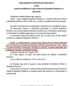 Astfel, tinerii care nu și-au perfectat actele de identitate până la 18 ani ar putea beneficia de un moratoriu timp de doi ani. Partidul „Acțiune și Solidaritate” a înregistrat un proiect în Parlament, în care stipulează că persoanele respective nu vor fi supuse procedurii de recunoaștere a cetățeniei până pe 1 ianuarie 2028, scrie REALITATEA.MD.
