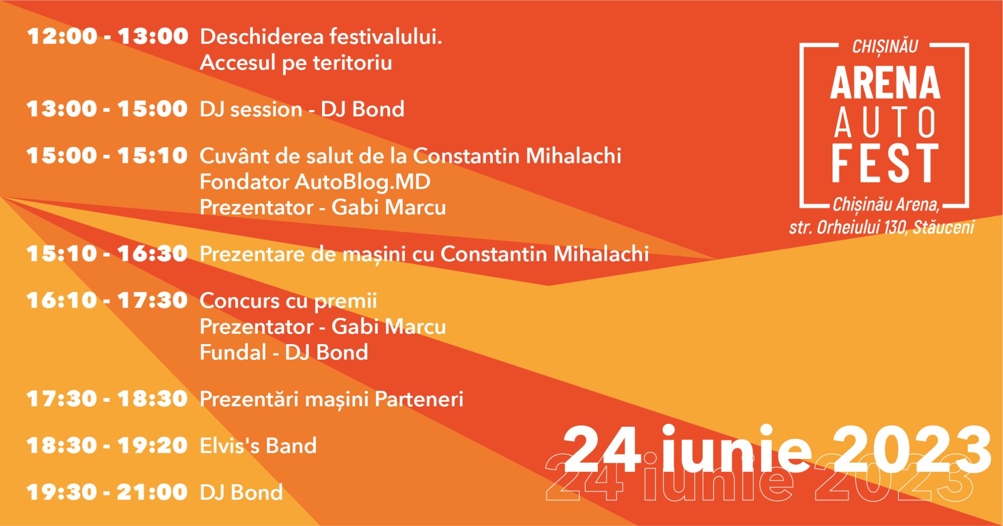- 15:00 – 18:30 — Prezentări de mașini ale partenerilor alături de Fondatorul AutoBlog.MD, Constantin Mihalachi