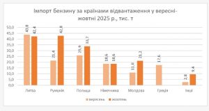 Importurile de benzină ale Ucrainei au crescut în octombrie 2025 la unul dintre cele mai ridicate niveluri din ultimii doi ani, atingând 168,2 mii de tone, cu 19% mai mult decât în septembrie și cu 64% peste volumul înregistrat în octombrie anul trecut. În primele zece luni ale anului, Ucraina a importat 1,27 milioane de tone, ceea ce indică un an record pentru piața carburanților, notează enkorr.ua.