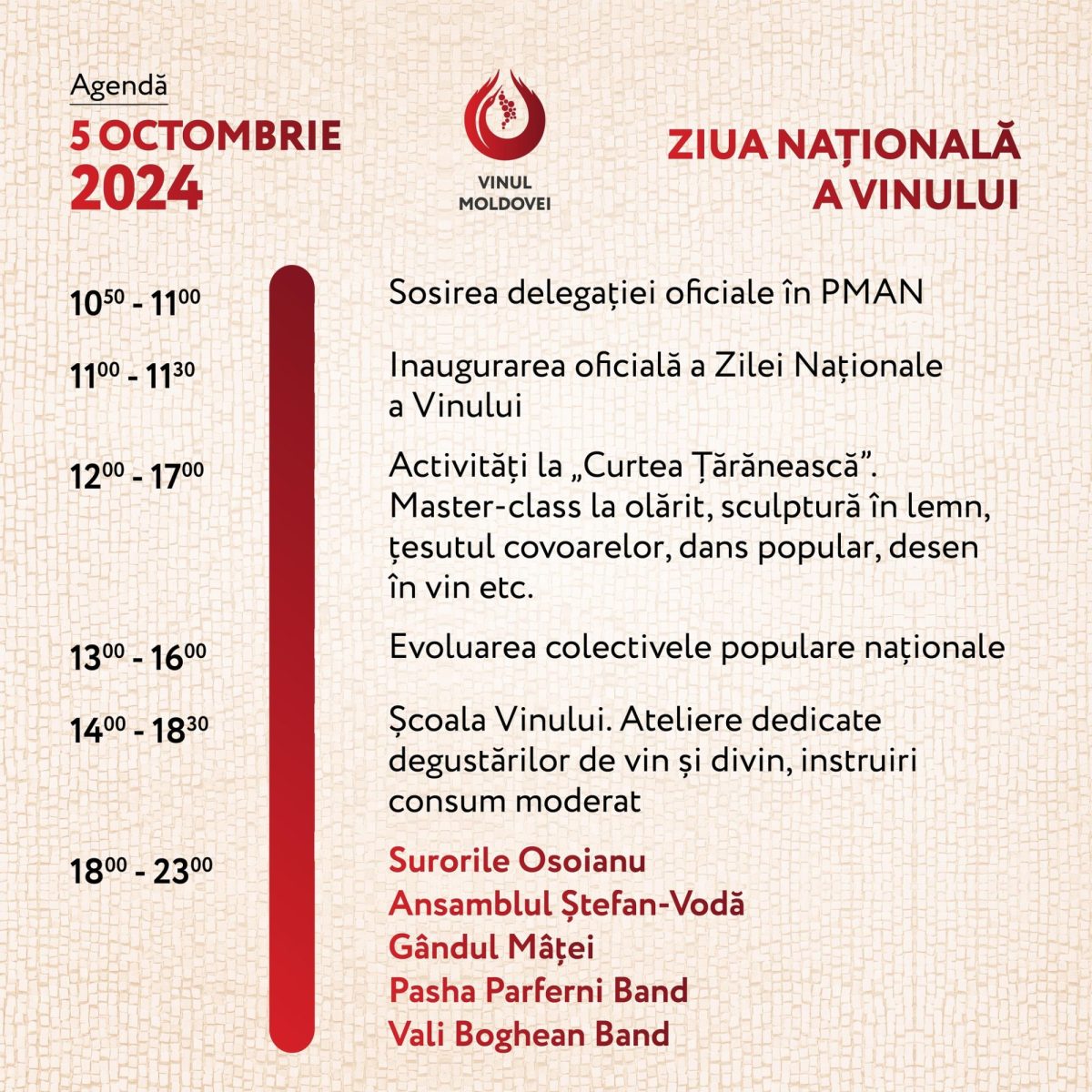Urmăriți pagina wineday.wineofmoldova.com și pagina de Facebook Wine of Moldova pentru a afla despre noutățile celei de-a XXIII-a ediții a Zilei Naționale a Vinului!
