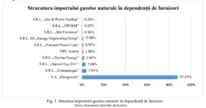 Cantitatea totală de gaze naturale importate în 2025 a ajuns la 960,3 milioane m³, cu 5,8% mai mult decât în 2024. Cea mai mare lună de import a fost februarie 2025, cu 190,276 milioane m³. Structura importurilor a fost dominată de S.A. „Energocom”, care a acoperit 87,54% din importuri, restul volumelor fiind distribuite între mai mulți furnizori și traderi, fiecare cu cote mult mai mici.
