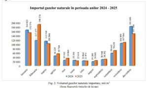 Datele arată și o creștere moderată a consumului total de gaze naturale în 2025. Cantitatea furnizată consumatorilor finali a ajuns la 905,667 milioane m³, cu circa 2% peste nivelul din 2024. Consumatorii casnici au crescut cu aproximativ 3%, iar consumul industrial cu circa 4%, în timp ce sectorul bugetar și categoria „alți consumatori” au înregistrat scăderi ușoare.