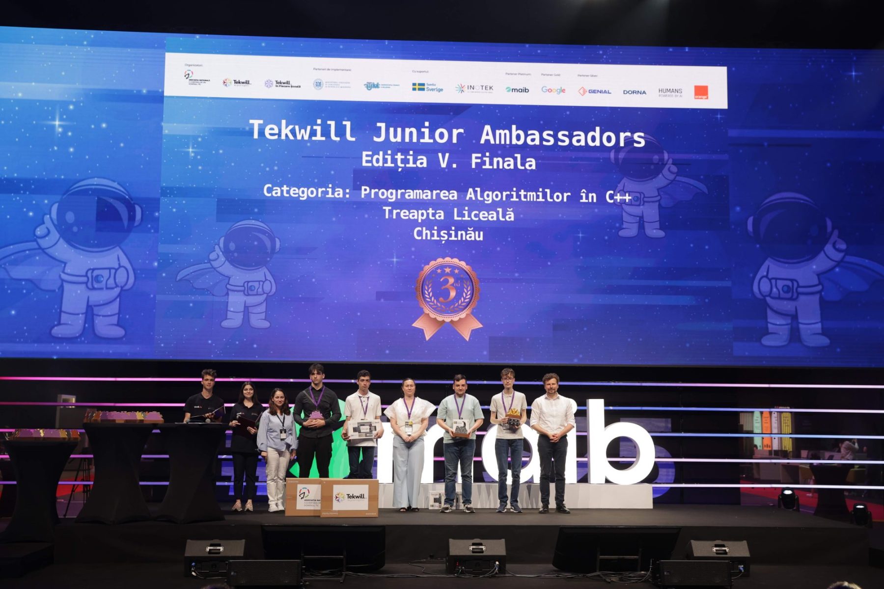 Și în acest an, tinerii inovatori din întreaga țară au strălucit pe scena Tekwill Junior Ambassadors, demonstrând că tehnologia și educația digitală vin cu oportunități și beneficii excepționale. Finala competiției a reunit 350 de elevi și 120 de profesori din cele 489 școli participante în cadrul programului „Tekwill în Fiecare Școală”. Participanții au prezentat proiecte digitale cu impact social în categoriile Programarea algoritmilor în C/C++, Proiectare și Dezvoltare Web, Inteligență Artificială, Aplicații Mobile, Design Grafic, Video Storytelling, Antreprenoriat și Inteligență Emoțională în Comunicare.