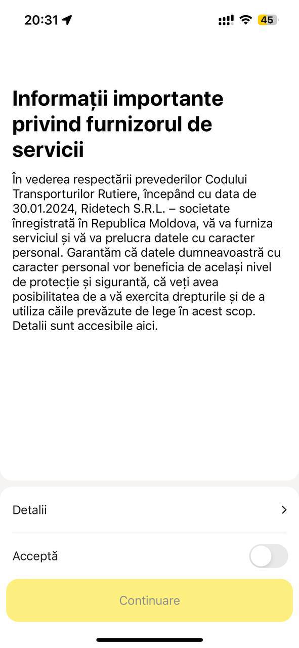 „Din 30 ianuarie 2024, serviciul informațional Yandex Go va fi furnizat de către o entitate juridică moldovenească. Am înregistrat aceasta încă din noiembrie 2023, însă procesul de localizare a necesitat un timp îndelungat, pentru a lua în considerare o multitudine de detalii tehnice și organizatorice. Vom continua să procesăm datele personale ale utilizatorilor în conformitate cu legislația Republicii Moldova și cele mai bune practici internaționale, precum GDPR, și de asemenea, să asigurăm toate drepturile subiecților de date prevăzute de lege. Compania noastră își păstrează în continuare angajamentul față de standardele înalte ale politicii de securitate”, se menționează în comunicatul companiei.